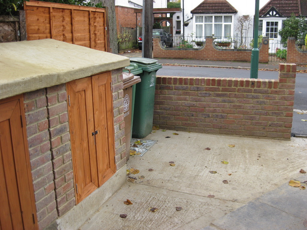 Construction of a covered side access with security door to the side of our client’s home. Brick built housing for Gas main in keeping with existing Electric meter housing, with handmade matching doors, along with front Brick wall.